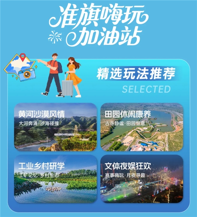 在服务保障与体验升级层面,专题深度整合准格尔旗国庆假期核心活动资源与惠民举措,为游客打造“省心、省钱、尽兴”的出行体验。“暖心红包 省钱趣游”覆盖住宿、景区等场景,切实降低游客出行成本,助力大家在国庆期间“玩转准格尔、消费更划算”。